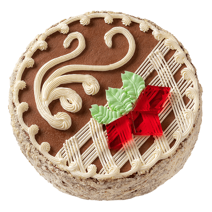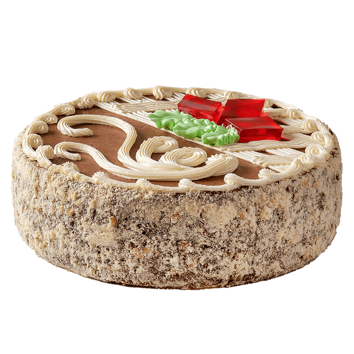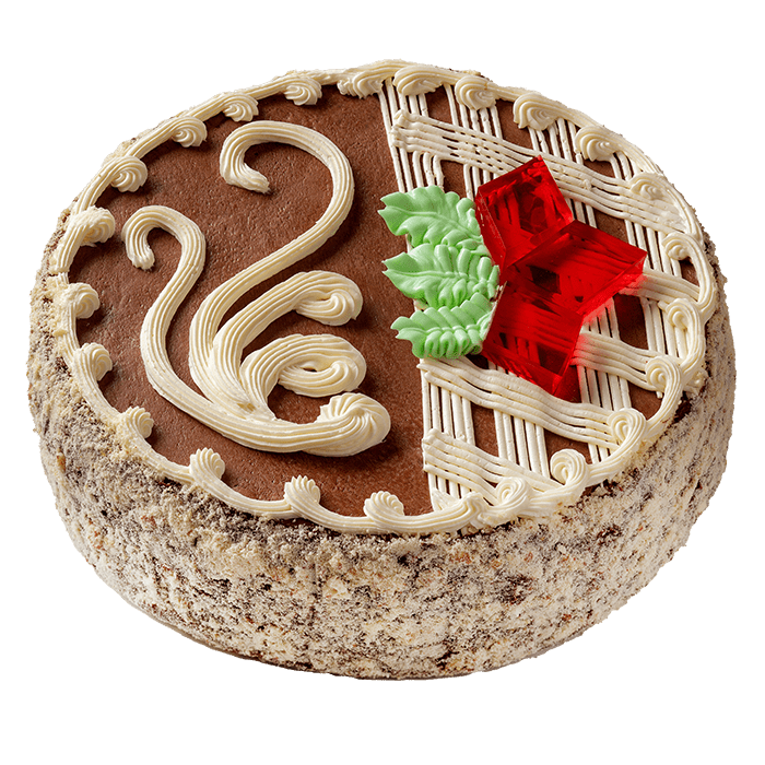 Торт «Легенда Києва» виготовлений за класичним рецептом. В основі – повітряні коржі-безе з арахісом, просочені масляним кремом «Шарлотт». Прикрашений тортик шоколадно-масляним кремом та мармеладкою у вигляді суцвіття каштана.