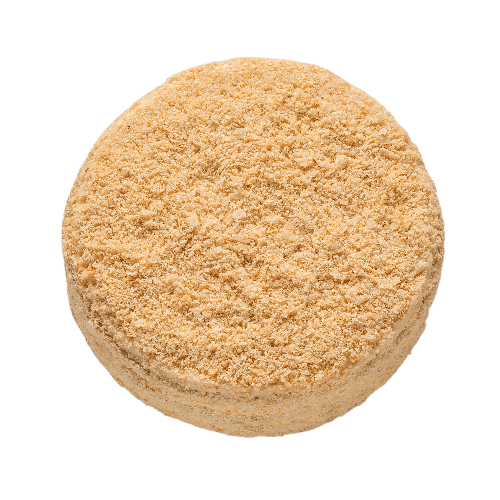 Єдиний у лінійці тортик із тоненьких коржів листкового тіста. Просочений заварним кремом із ноткою коньяку, який входить до його складу.