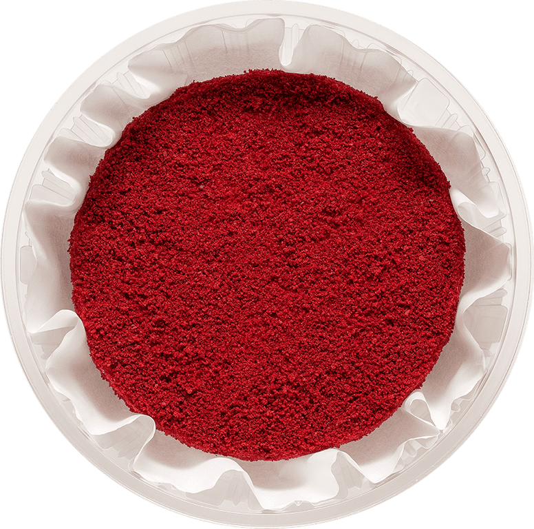 Витончений пухкий торт насиченого червоного кольору як «Червоний Оксамит», де два шари бісквіту з’єднані легким кремом на основі крем-сиру. Поверхня торта також декорована кремом та крихтами бісквіту. Це витримана класика у світі кондитерського мистецтва.