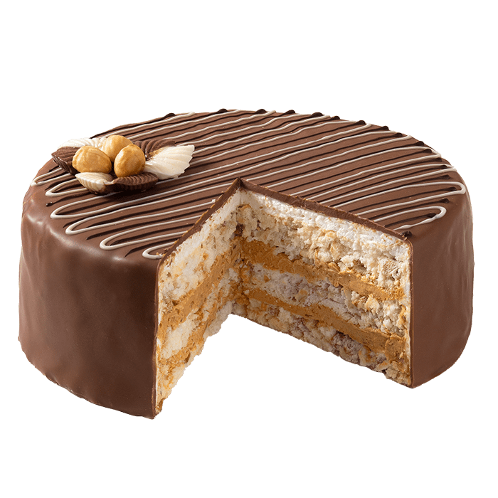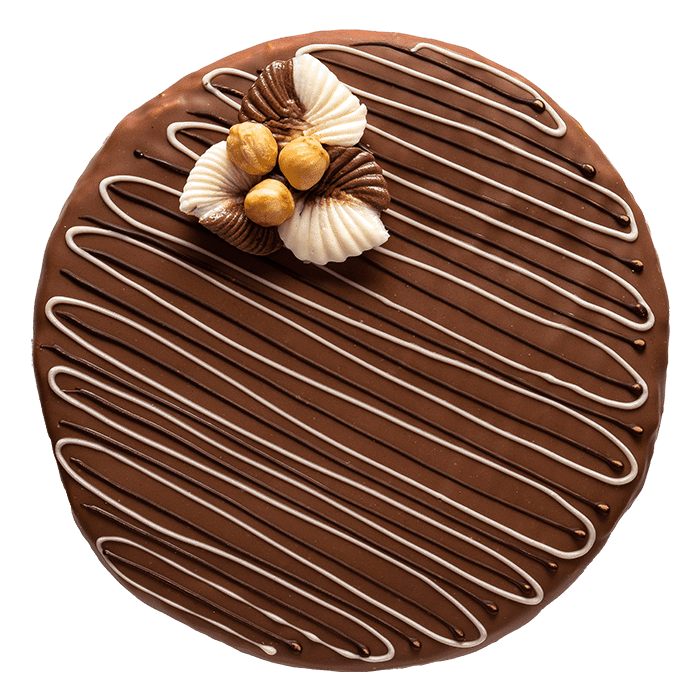 Ніжна молочна начинка з додаванням хрусткого подрібненого грильяжу. Верхній шар вкритий глазур’ю та елегантно оздоблений для завершення розкішного вигляду.