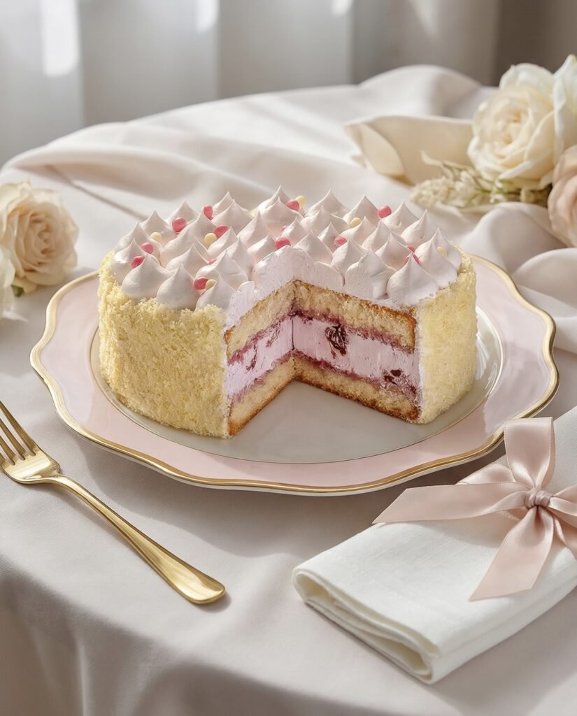 Light sponge layers paired with a delicate creamy berry filling create a soft, harmonious flavor without excessive sweetness — exactly the kind of dessert you want to return to again and again.